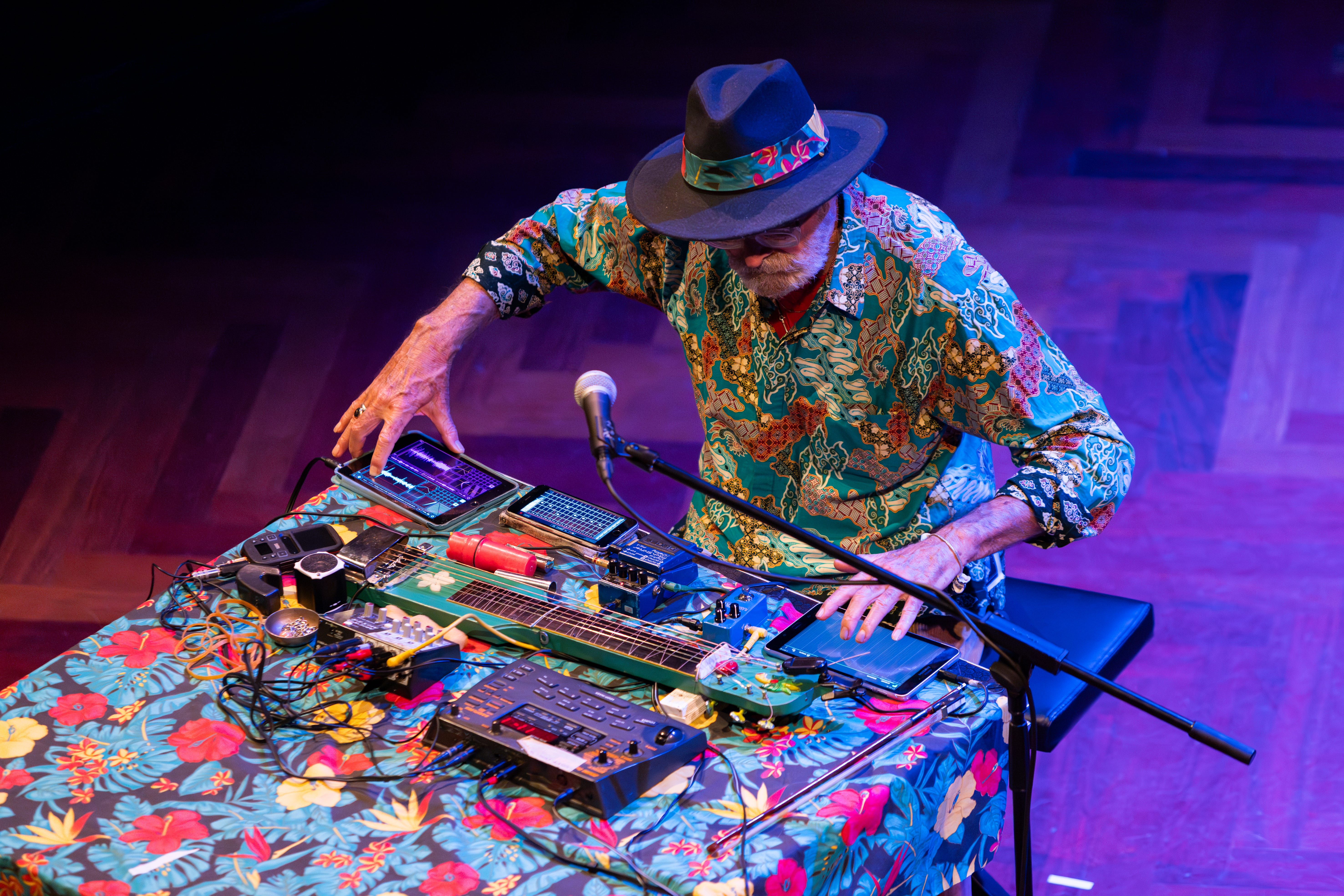 Born in Reading, Berkshire, in 1942, Cooper started playing guitar as a teenager and by the 1960s was a fixture in England’s blues and folk clubs. Never one to settle into genre conventions, he connected the dots between blues guitar and Hawaiian guitar — they share the “glissando sound,” gliding from one pitch to the next — and started playing around with slack-key and steel guitars. Not that any of it was ever a straight line: Cooper hopped around “[f]rom Blues and Folk to singer songwriter in avant rock bands to free improvised music, reggae, a Hawaiian band, No Wave, New Wave, etc etc.”